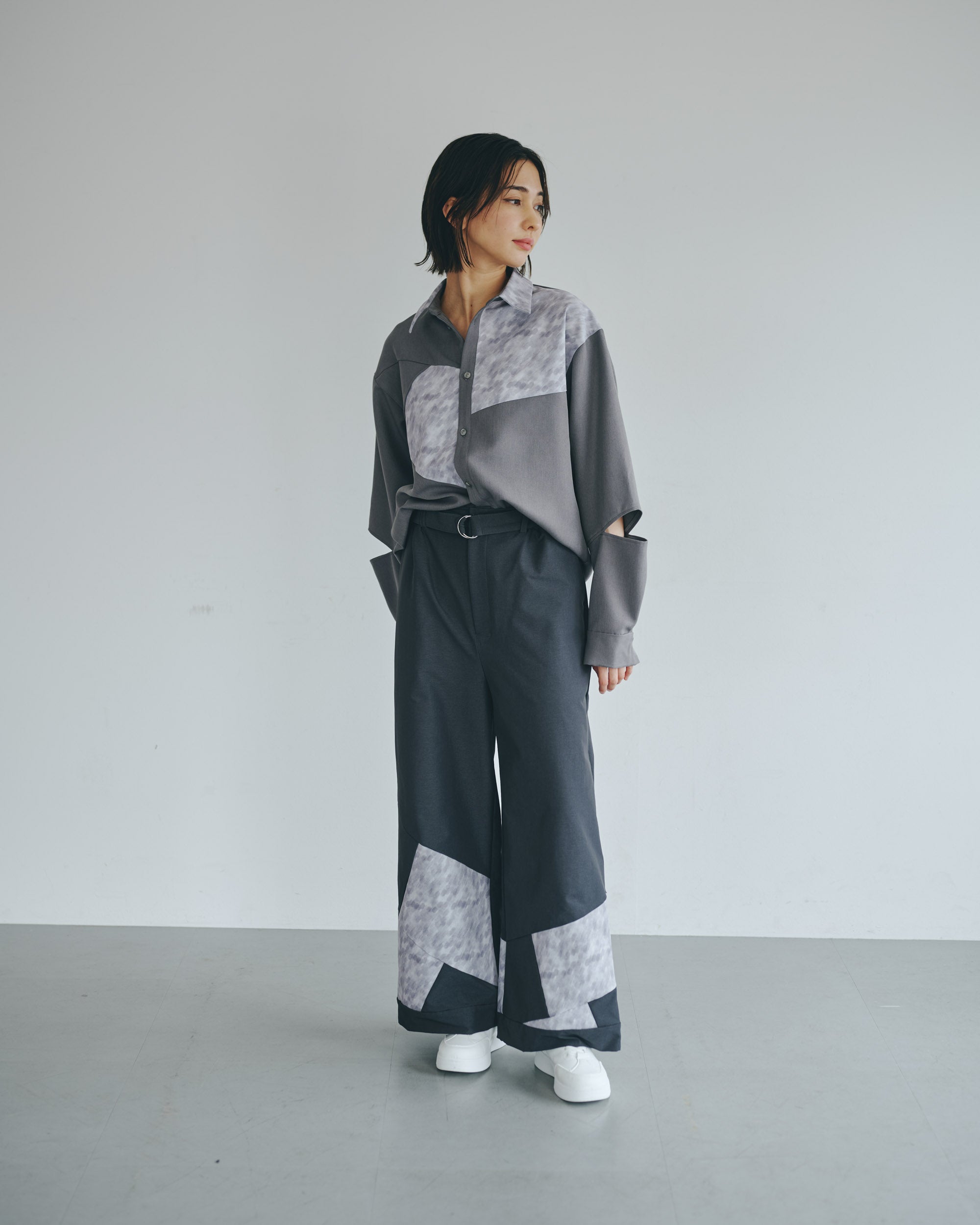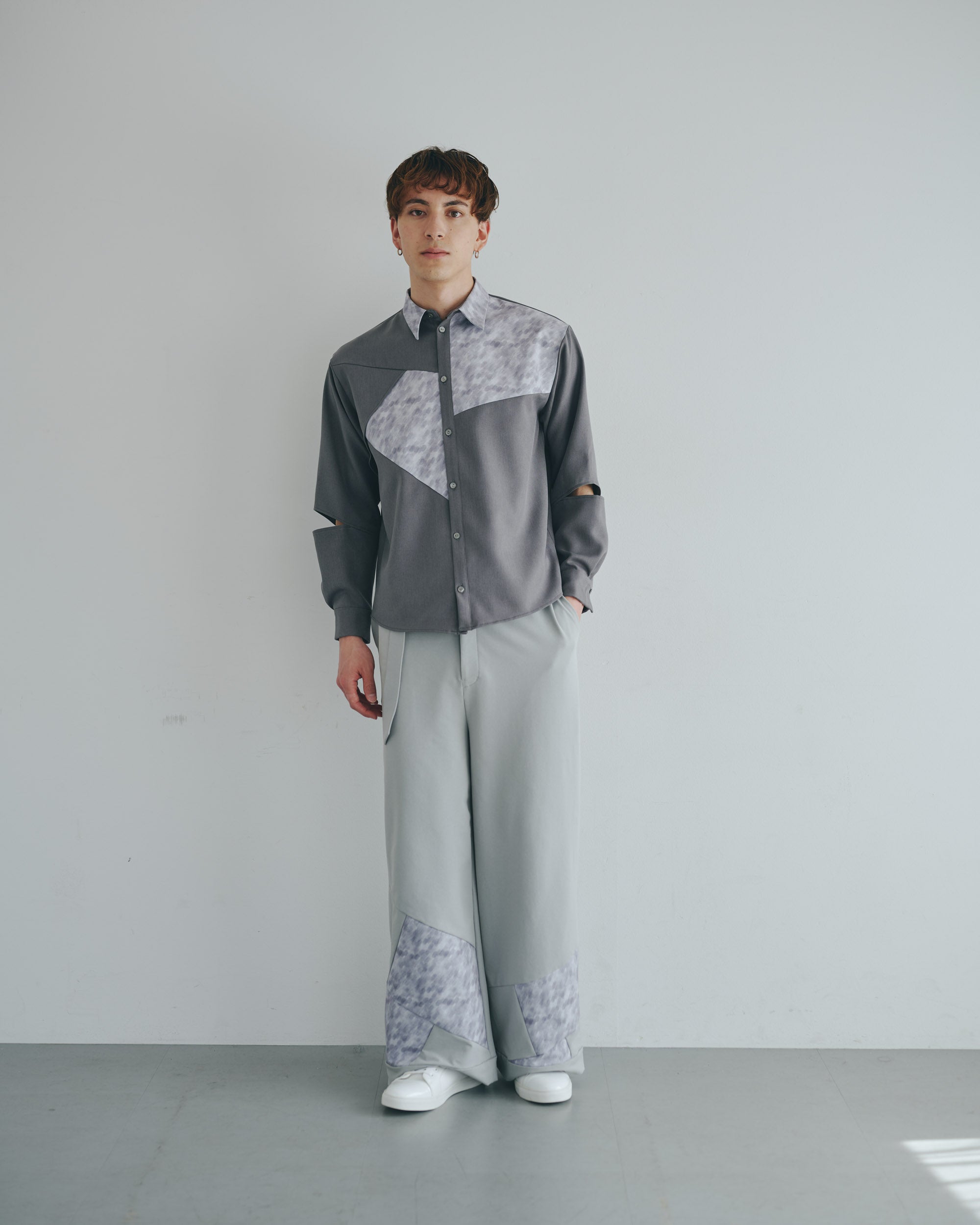 [Unisex] Print Accent Asymmetric Shirt (GRAY)