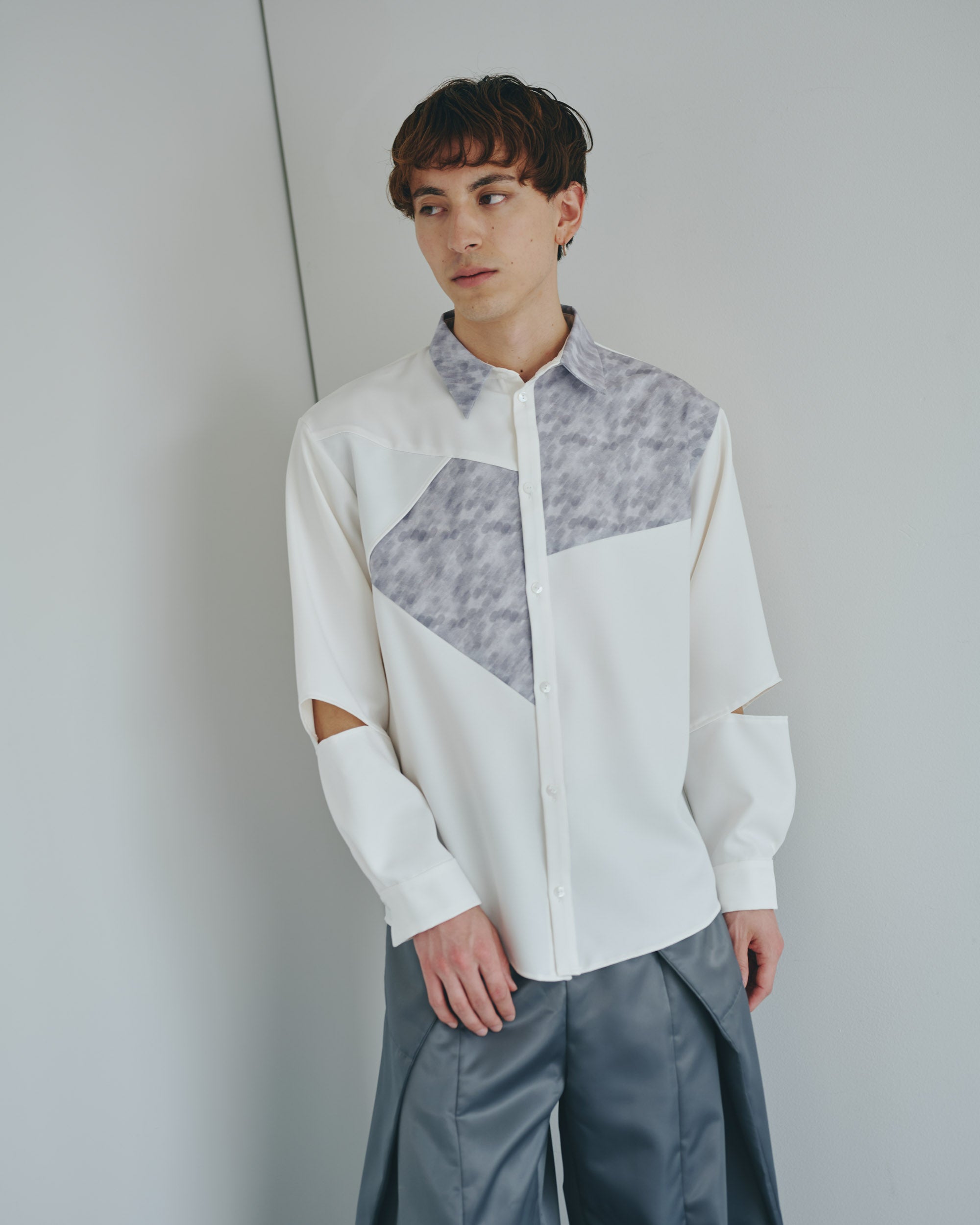 [Unisex] Print Accent Asymmetric Shirt (WHITE)