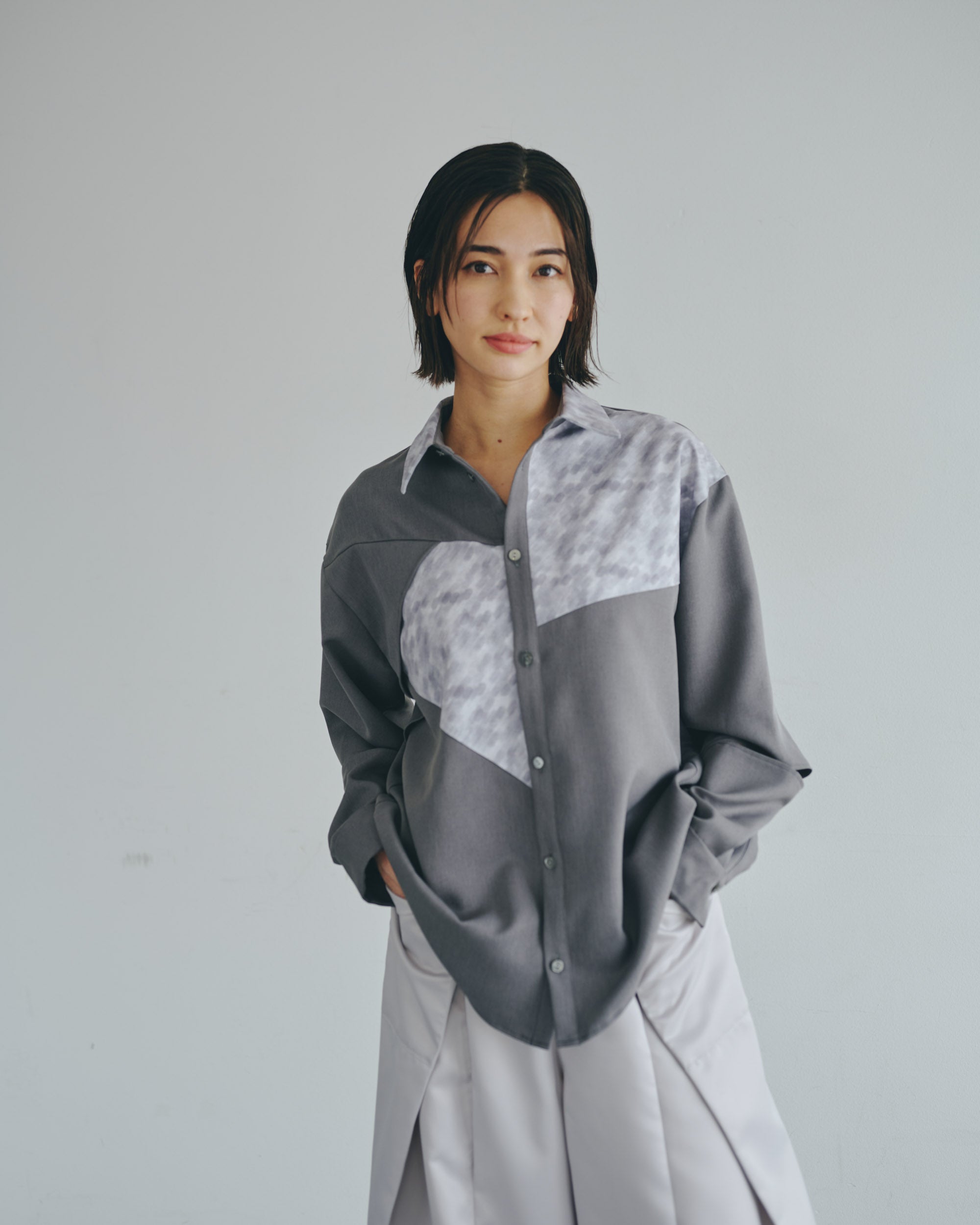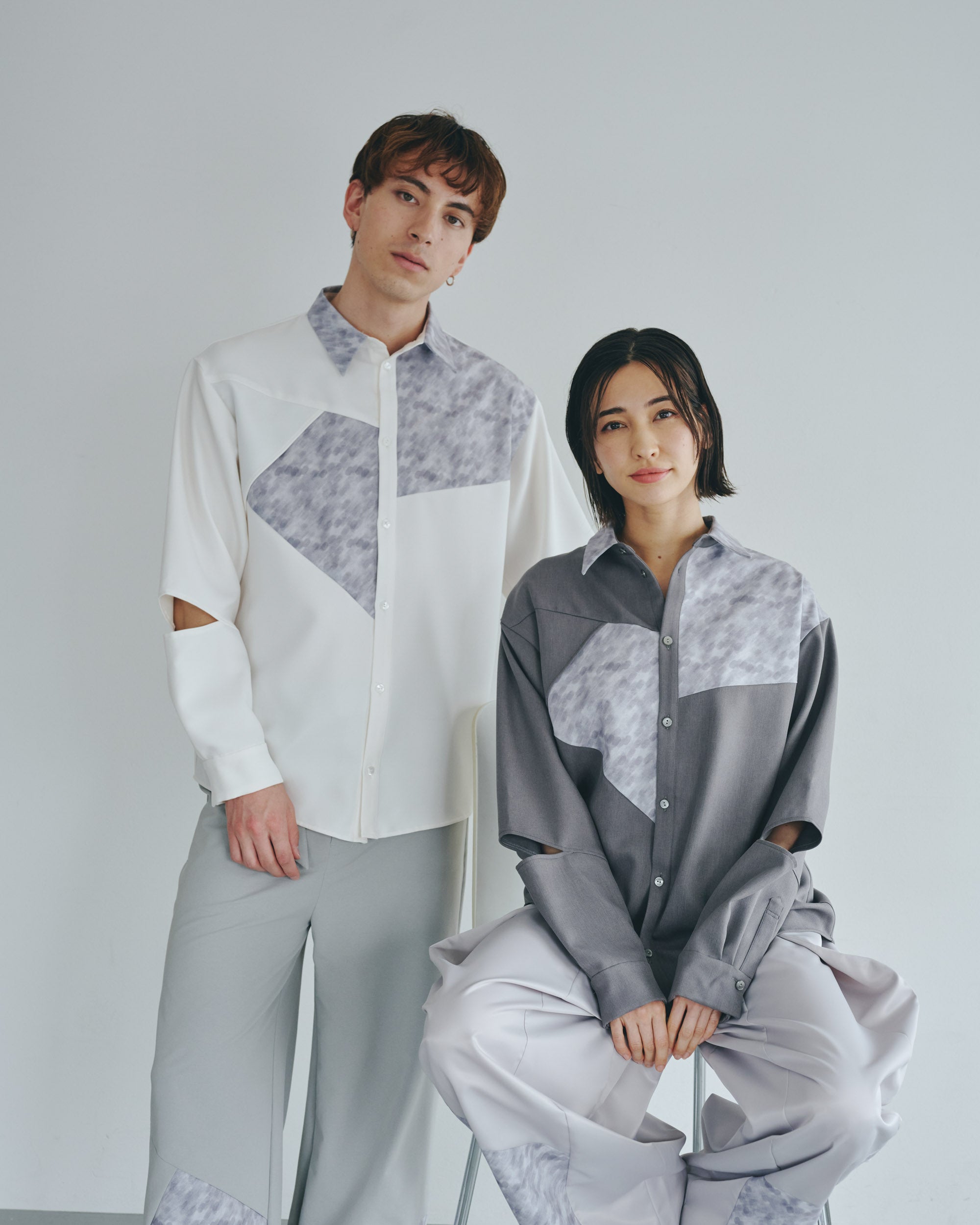 [Unisex] Sheer Layered Print Shirt (GREIGE)