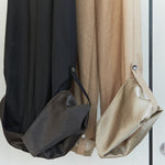 The asymmetrical height of the roll-up on the inside and outside gives it an original finish.