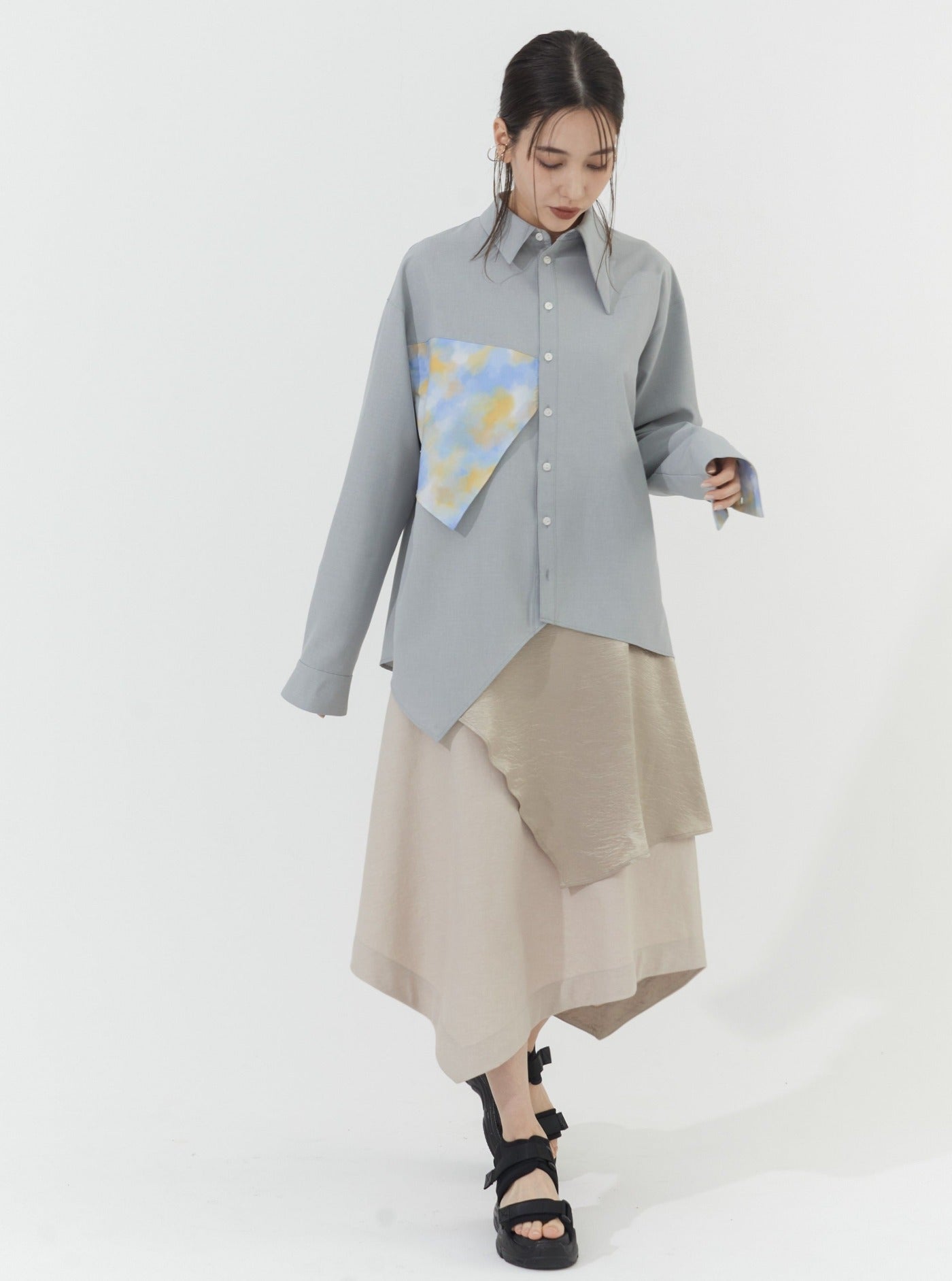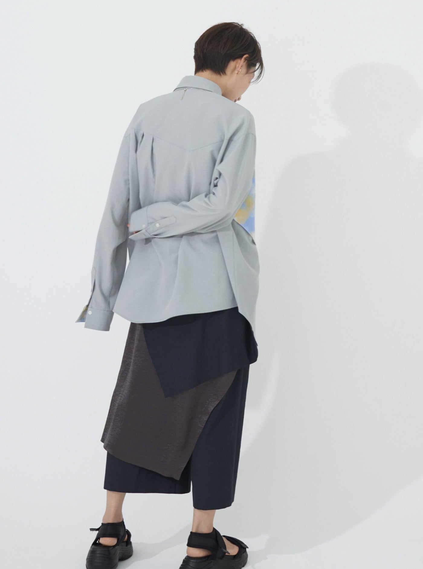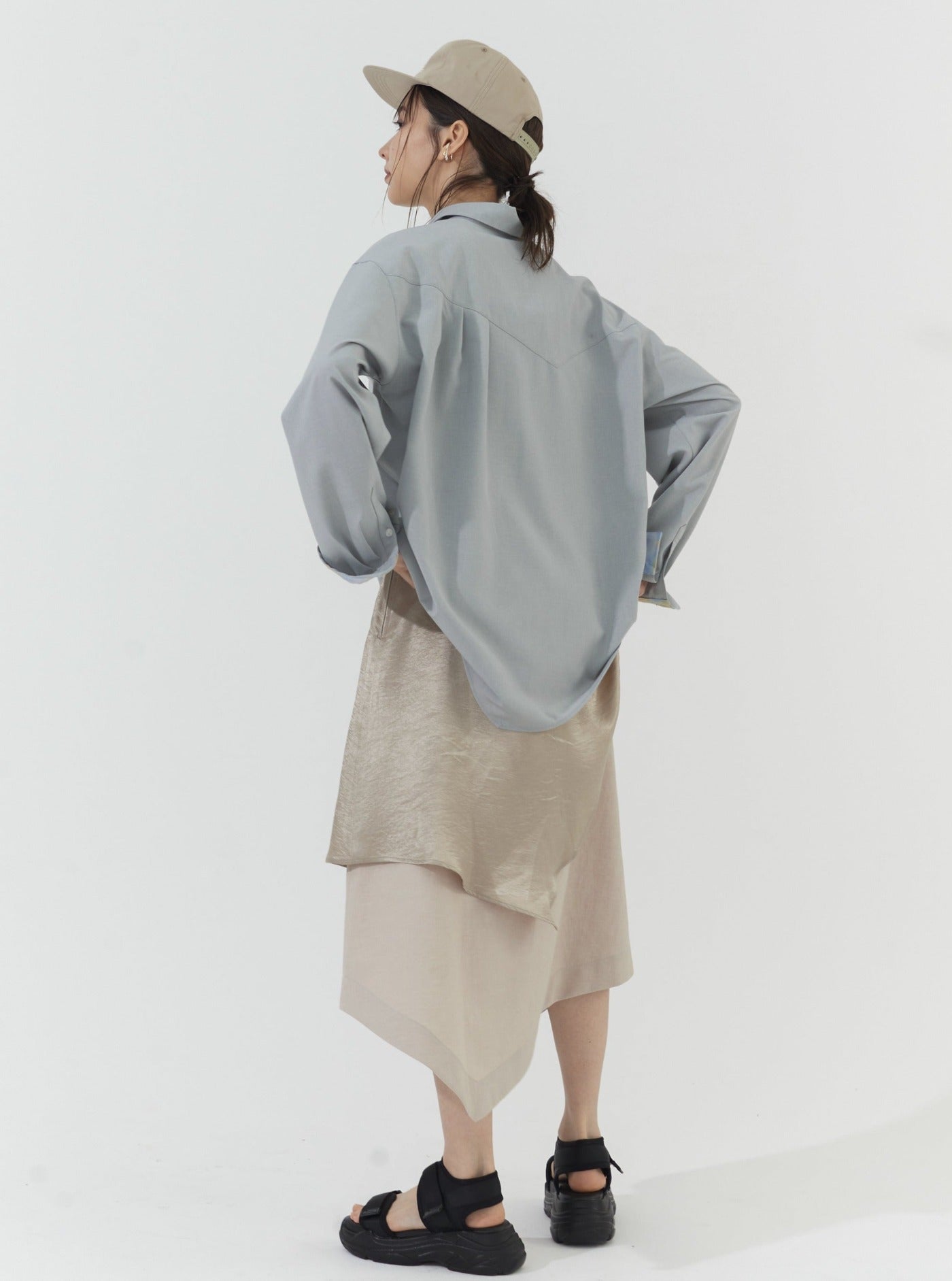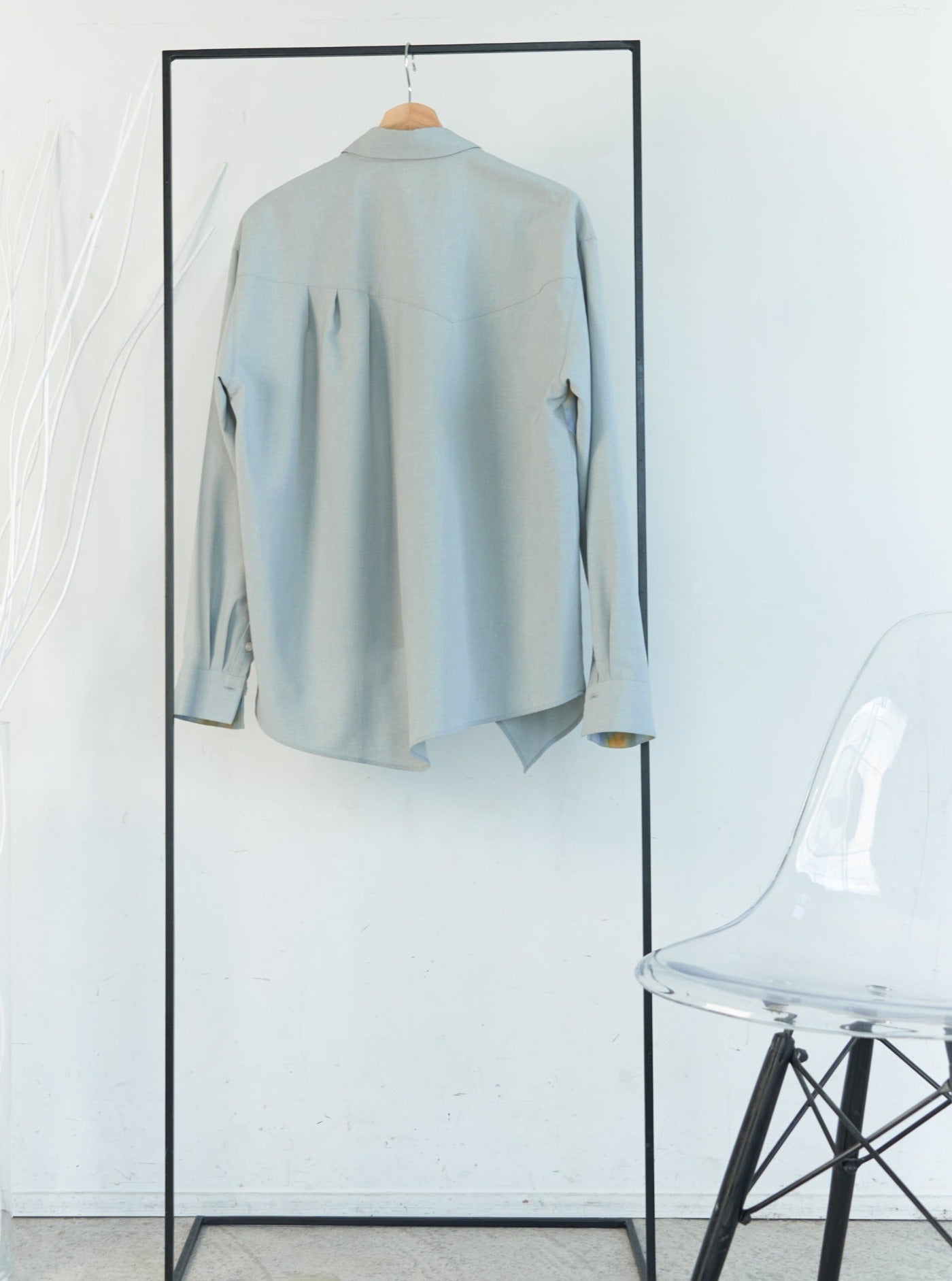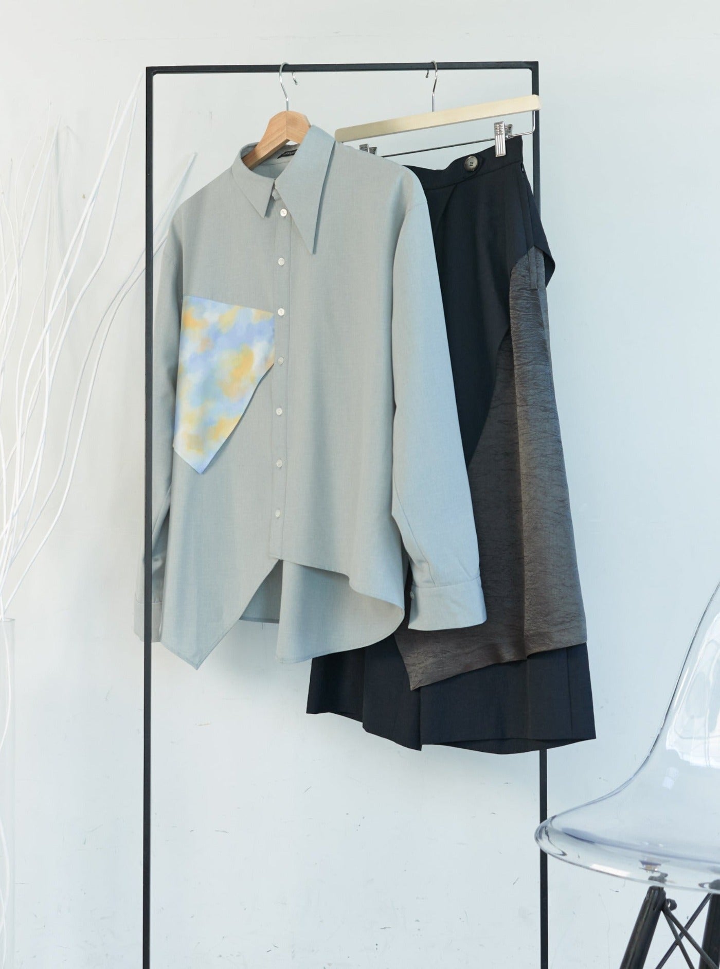 A one-of-a-kind silhouette with asymmetrical design on the collar, front, and back style.