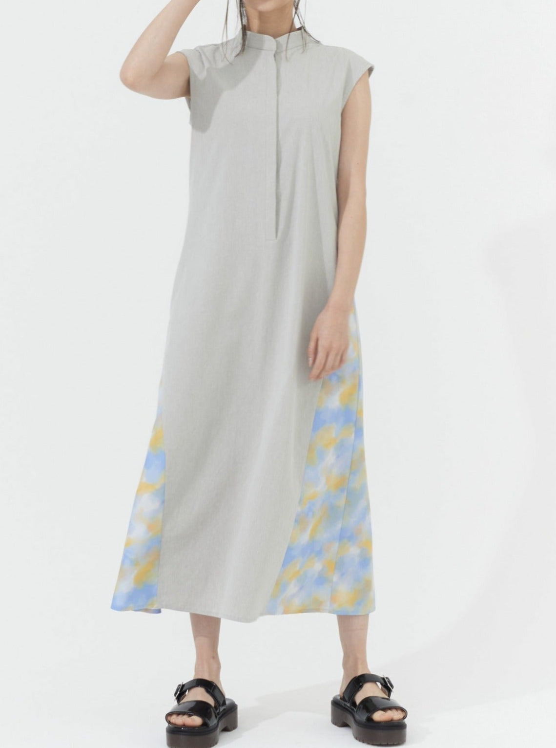 Asymmetric Printed Hem Dress (GREIGE)