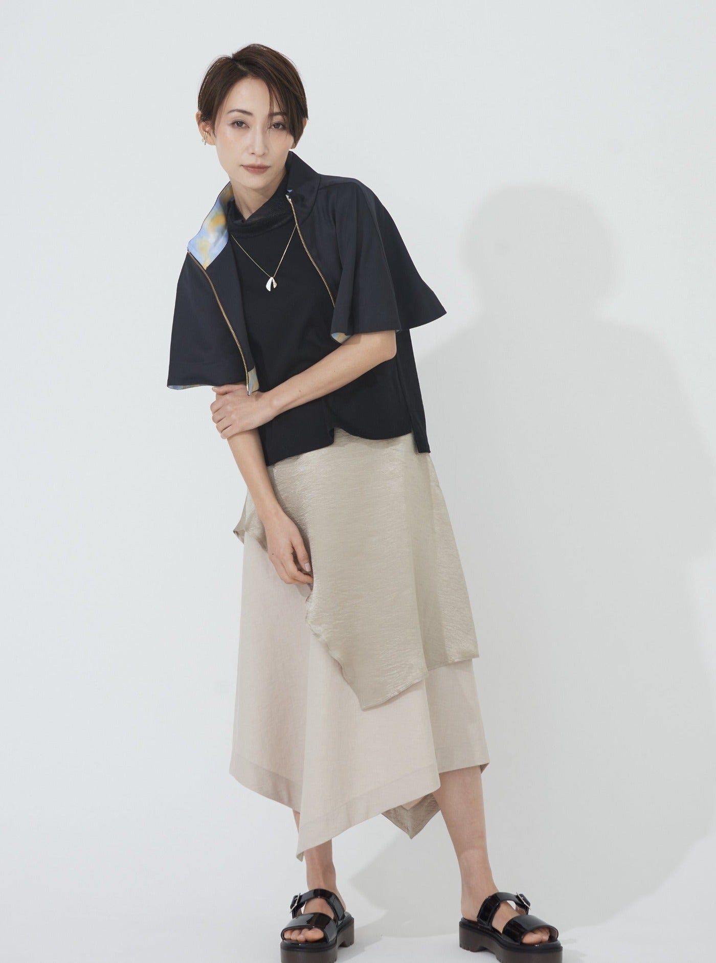 A short cape that is nice for summer and can be worn smoothly and lightly.