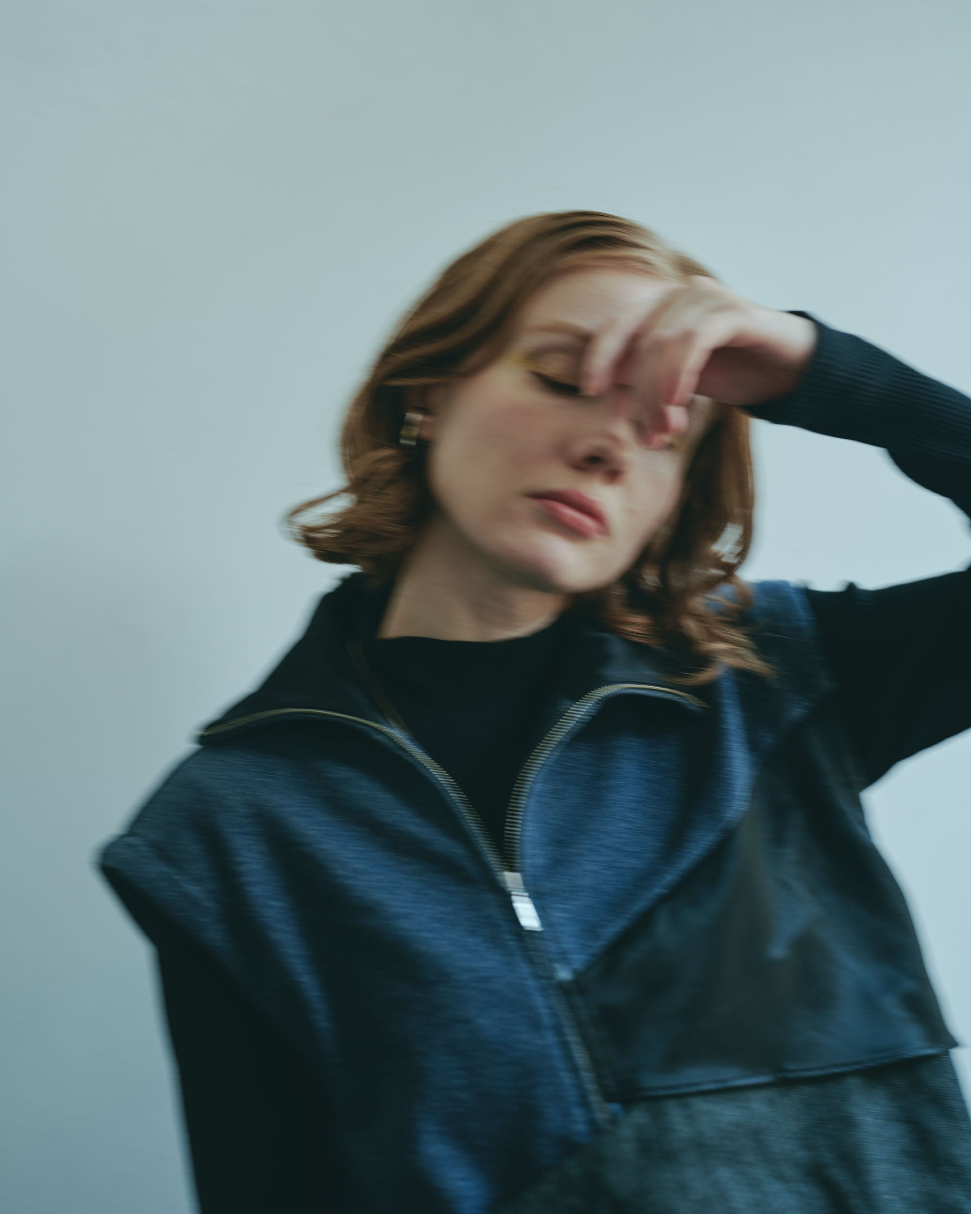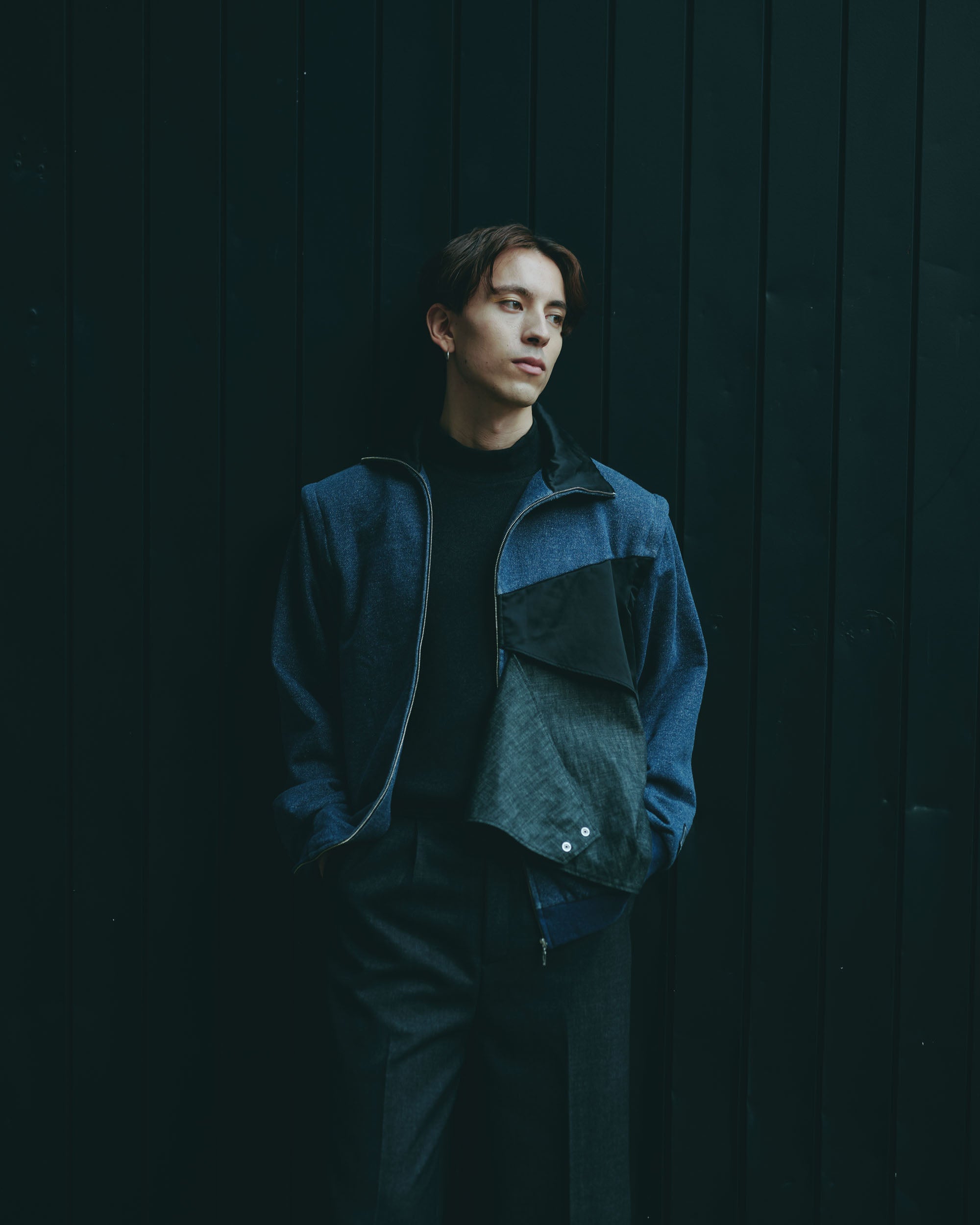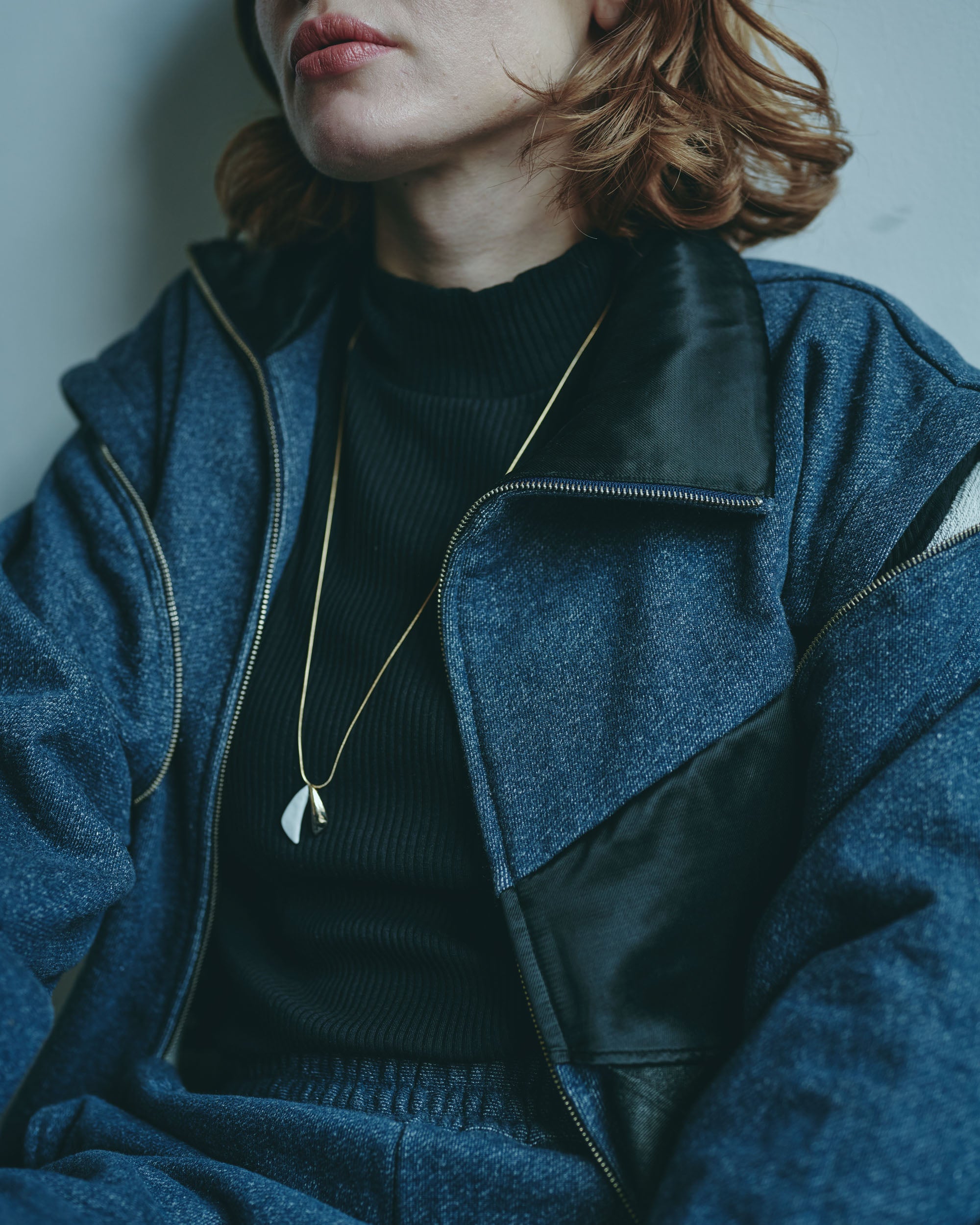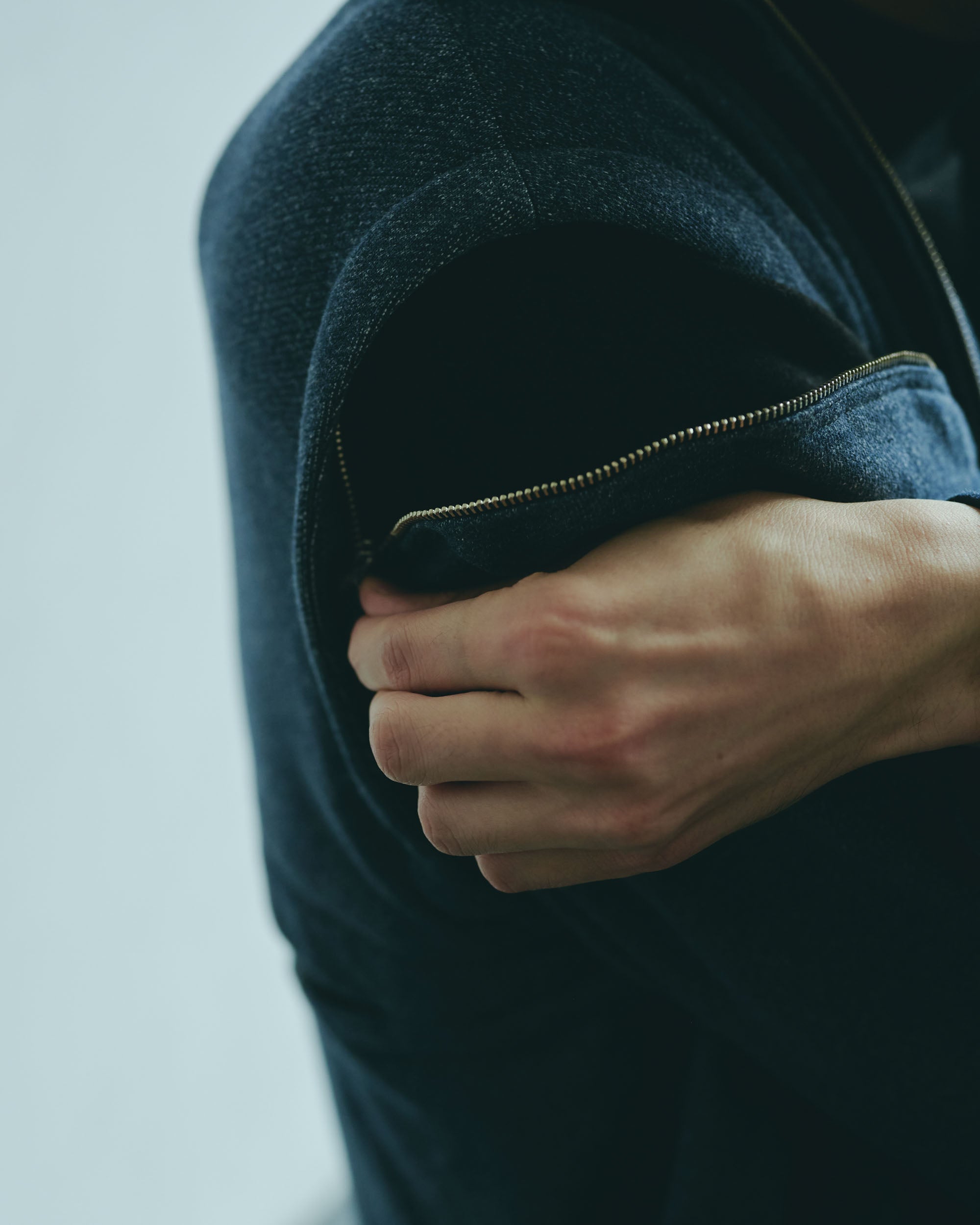 A design zip blouson that can be worn in a variety of styles by removing the sleeves and adjusting the front zipper and buttons.