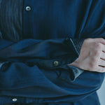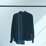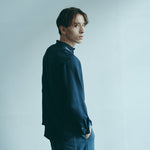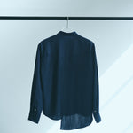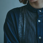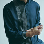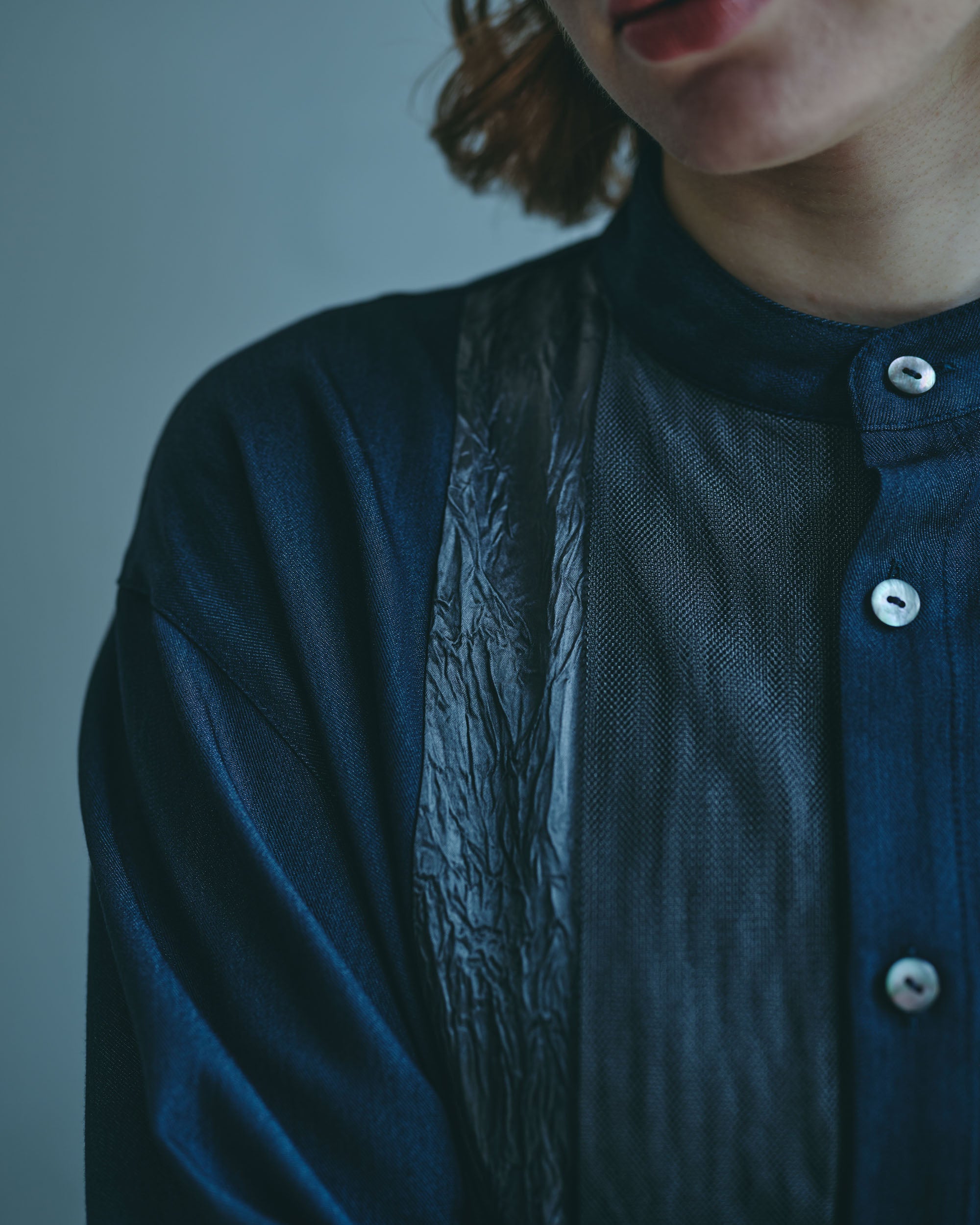 [Unisex] Mesh&Shiny Design Band Collar Shirt (NAVY)