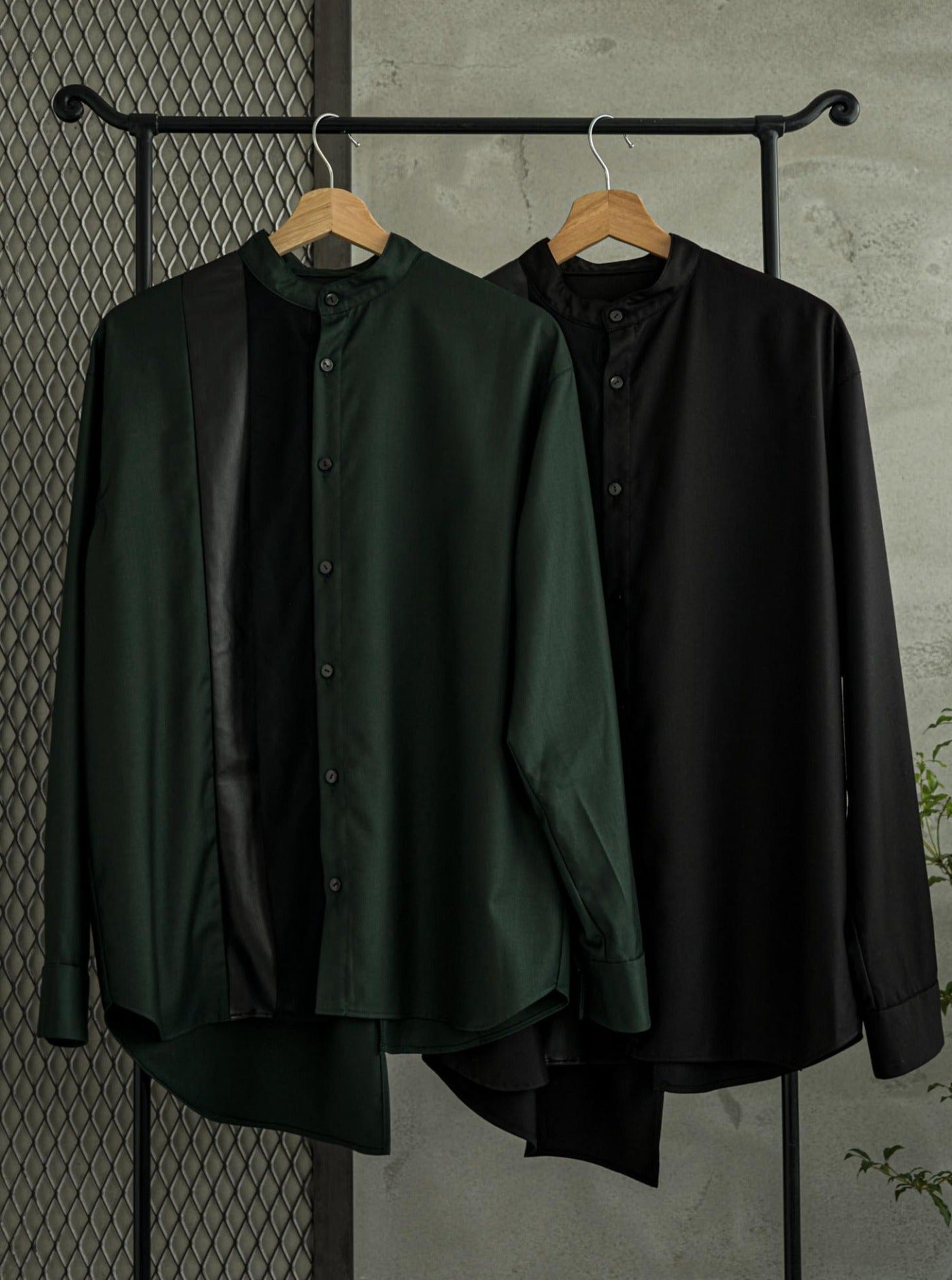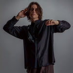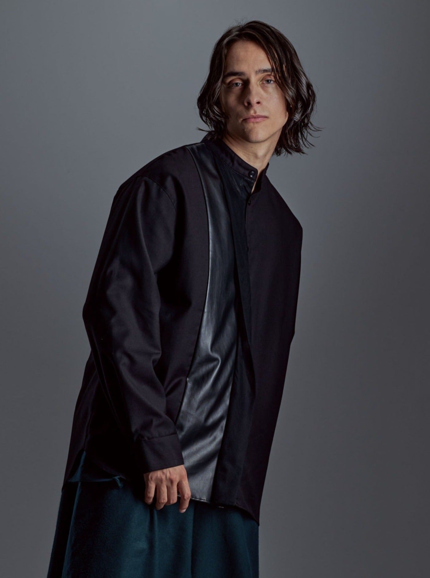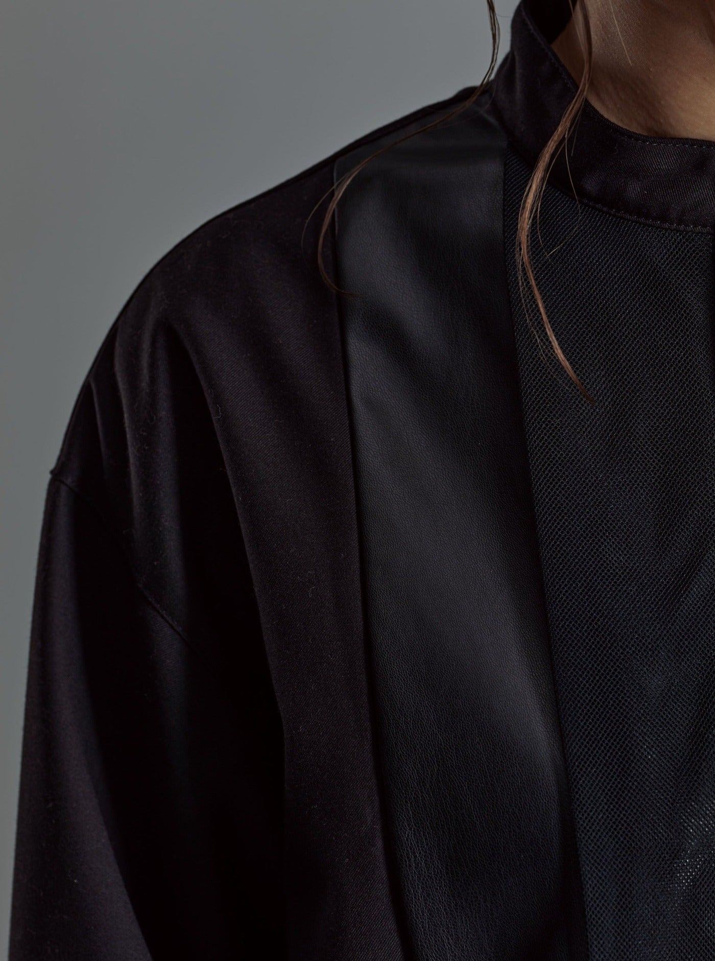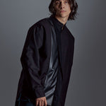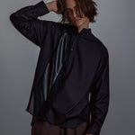 [Unisex] Synthetic Leather & Mesh Accented Shirt (BLACK)