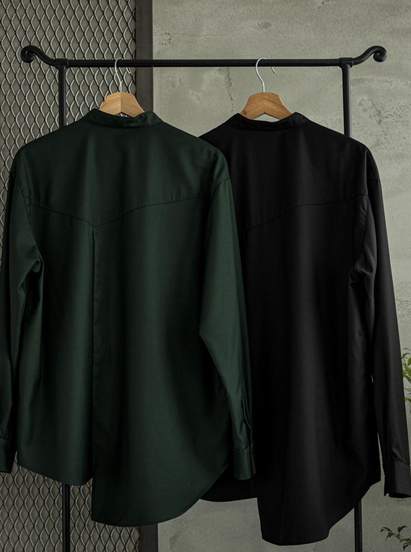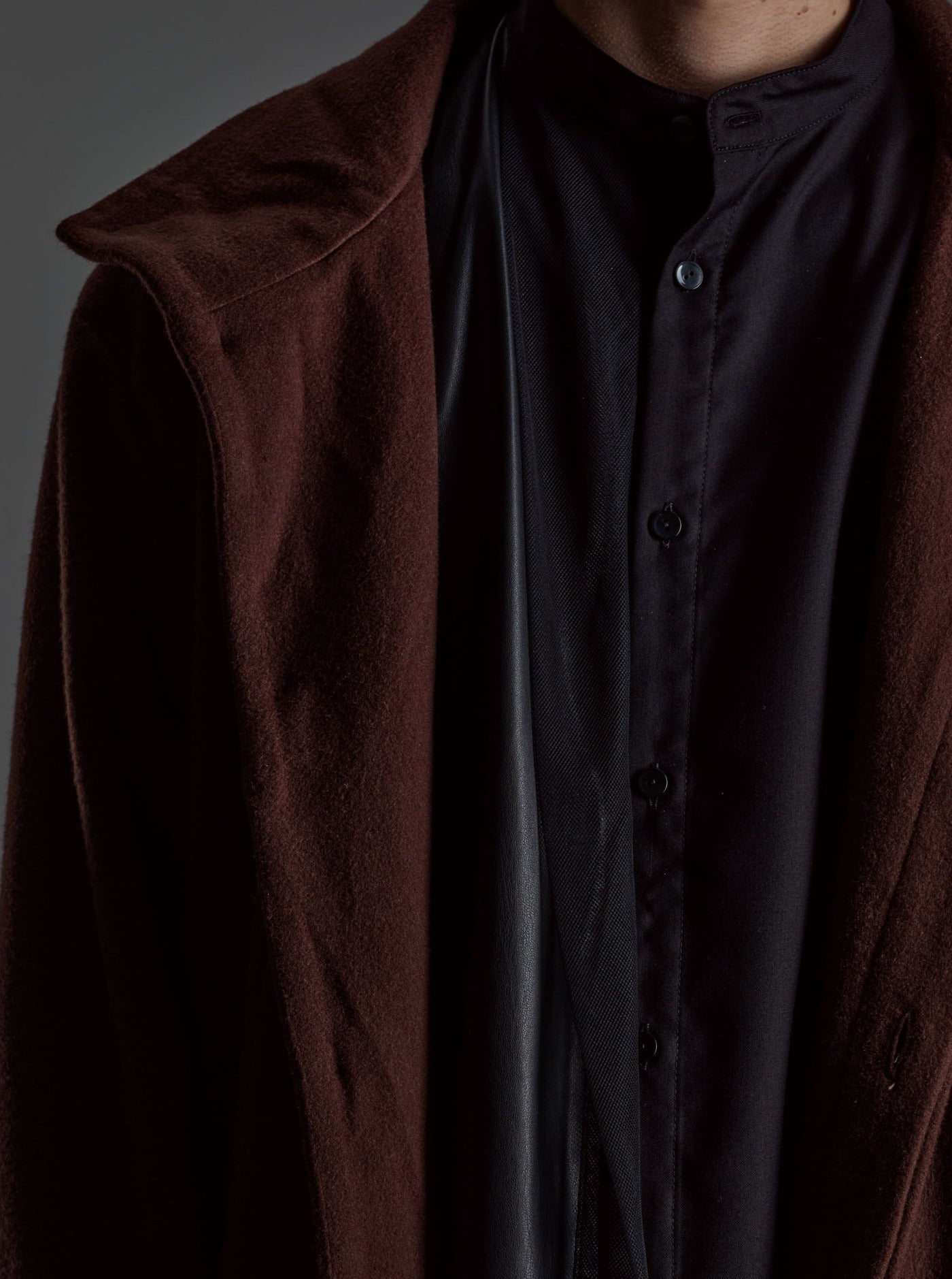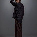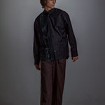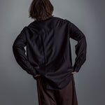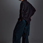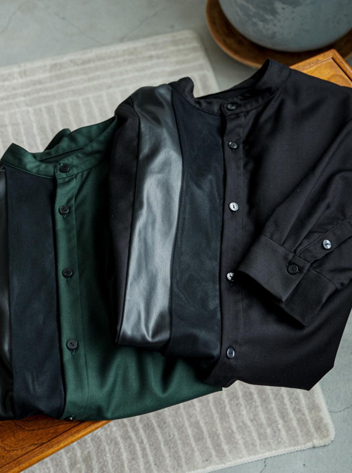 [Unisex] Synthetic Leather & Mesh Accented Shirt (BLACK)