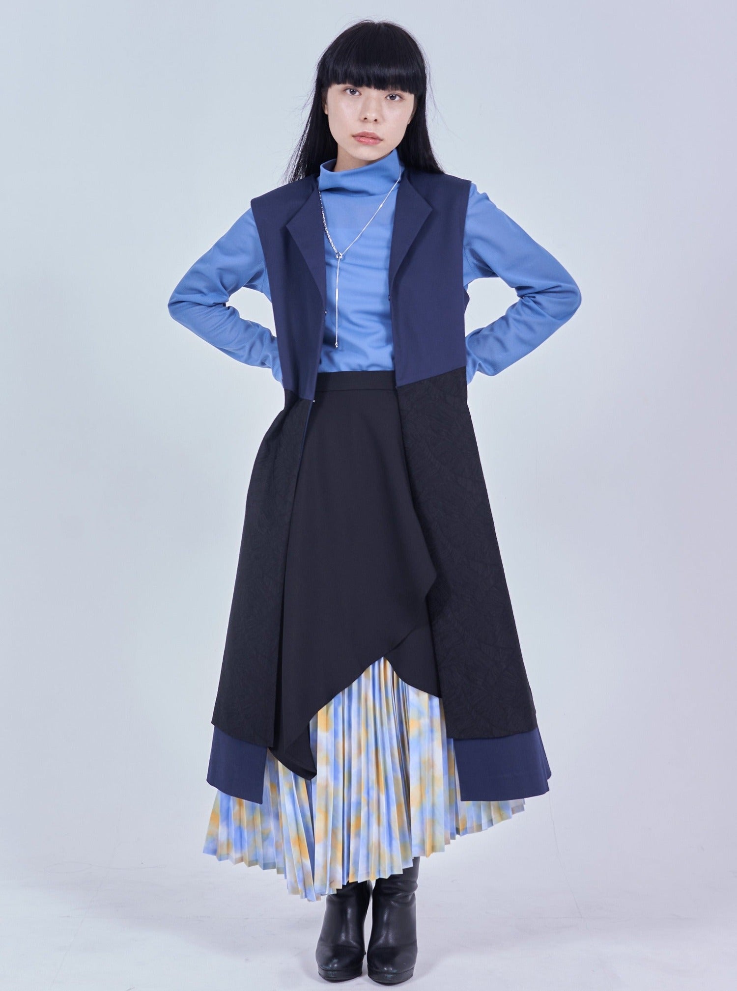 裾も斜めのアシンメトリーなラインでより動きを楽しめるシルエット。