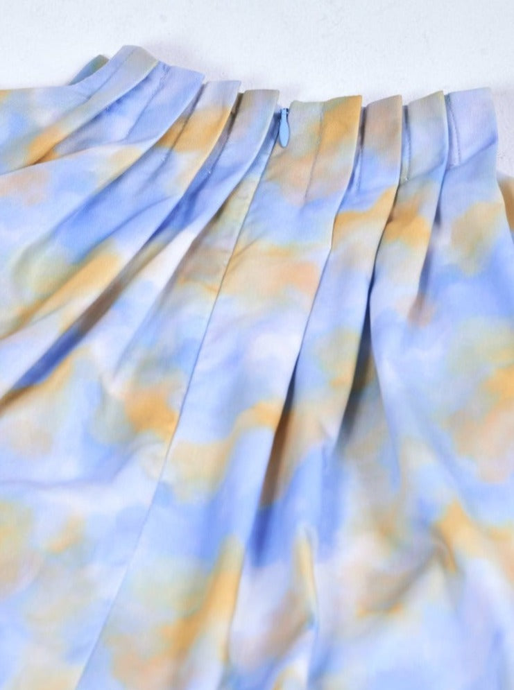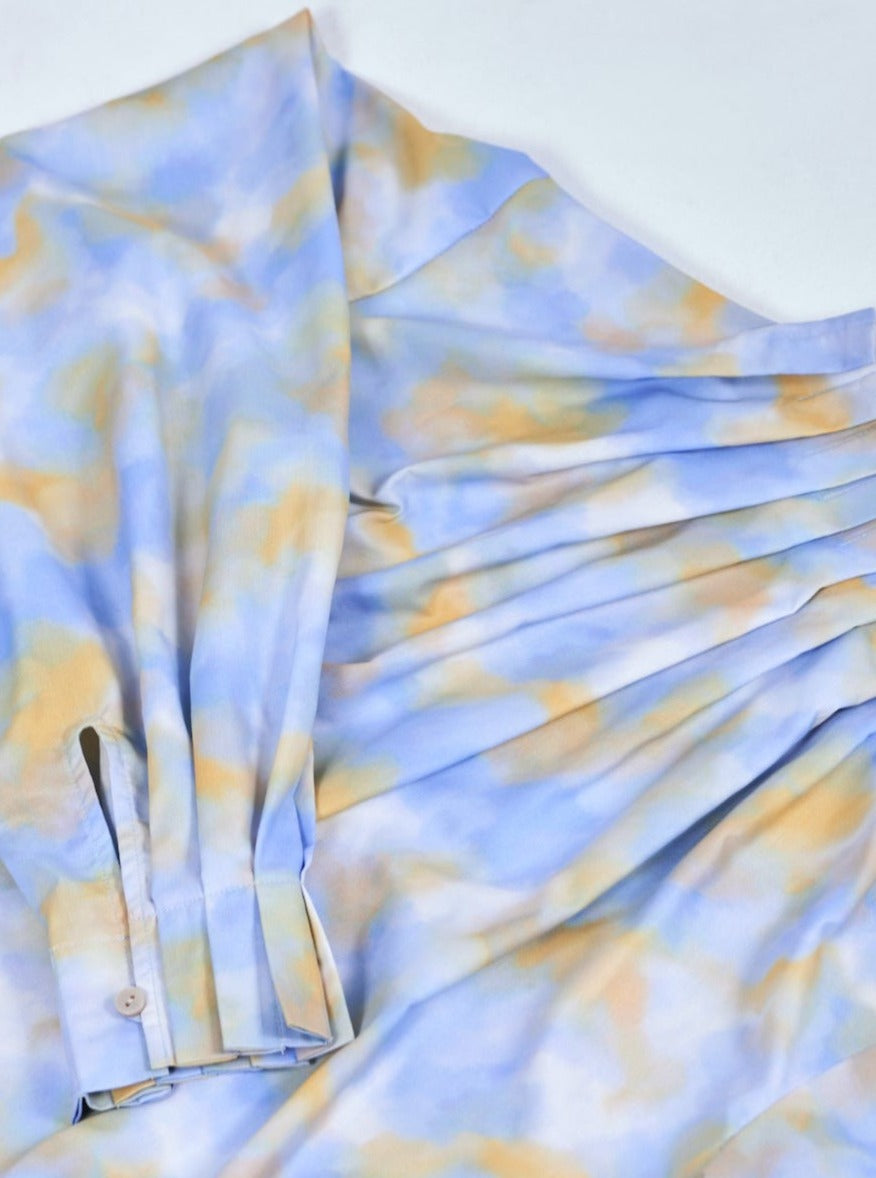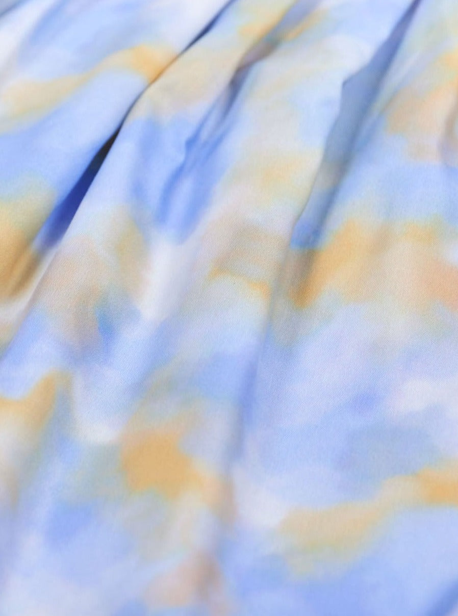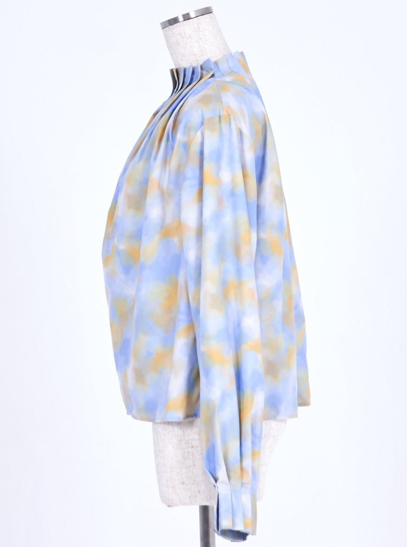 プリント生地はMizuidオリジナル。柔らかな光と流れを感じさせる淡い色合いで、鮮やかながらも上品な仕上がりに。