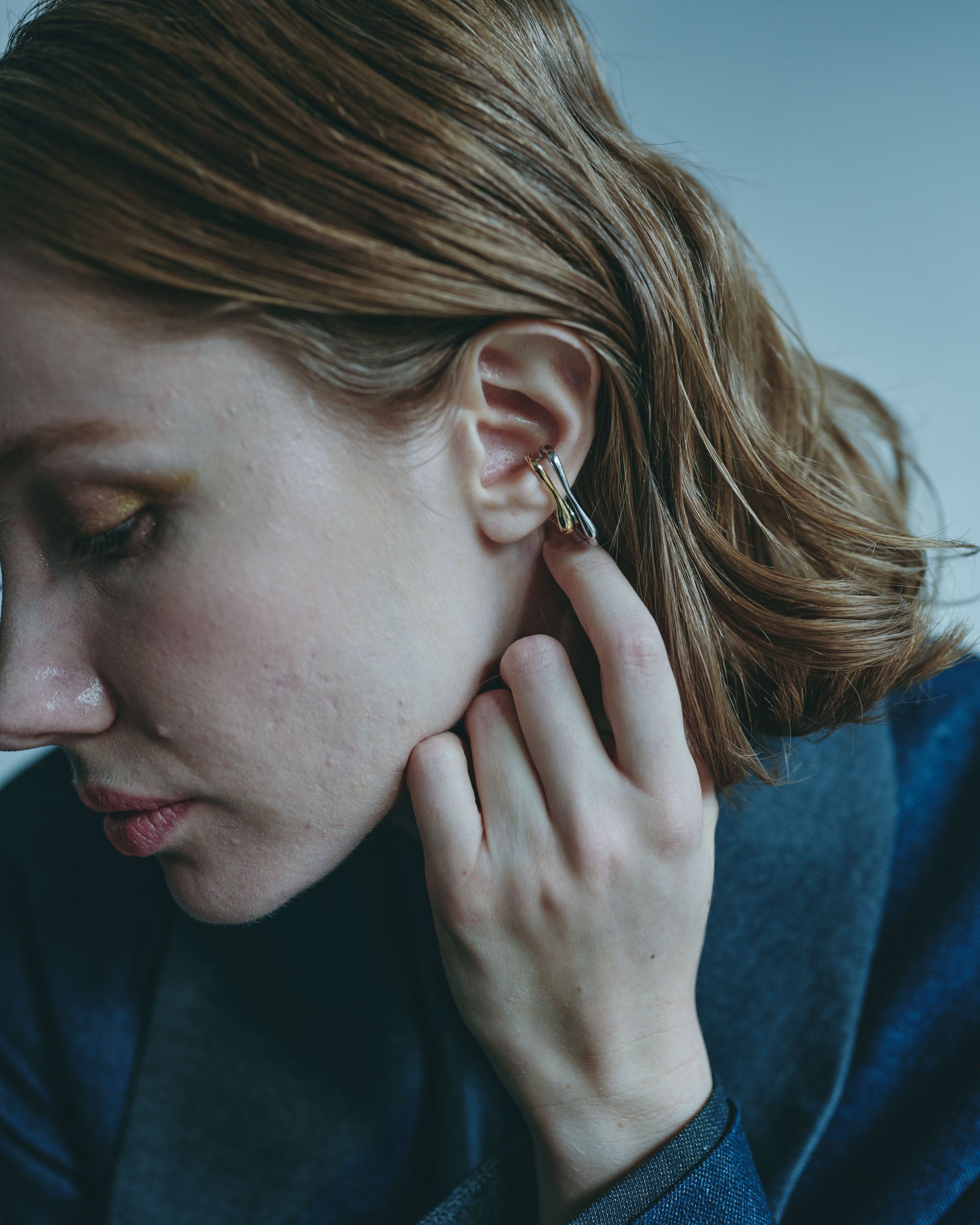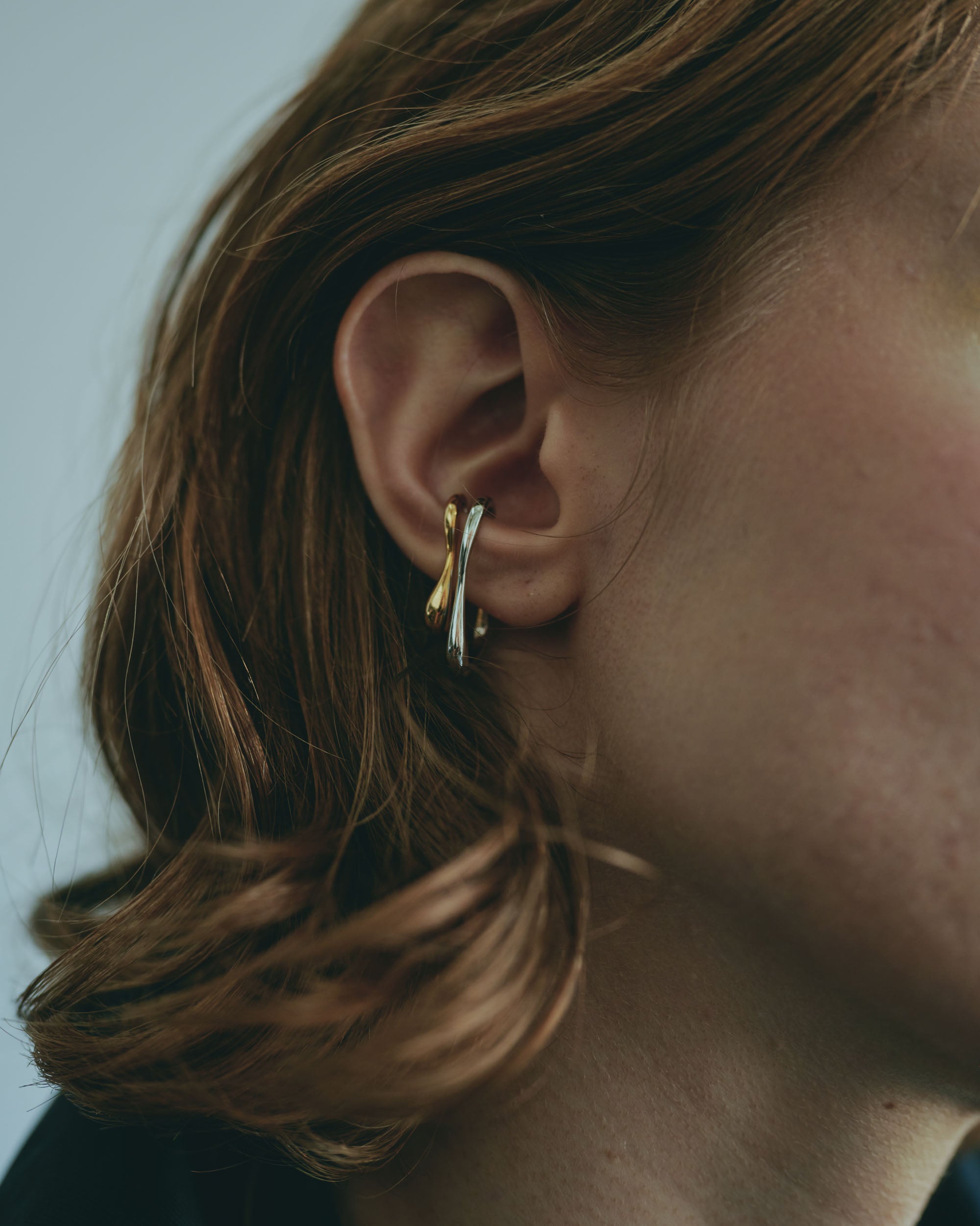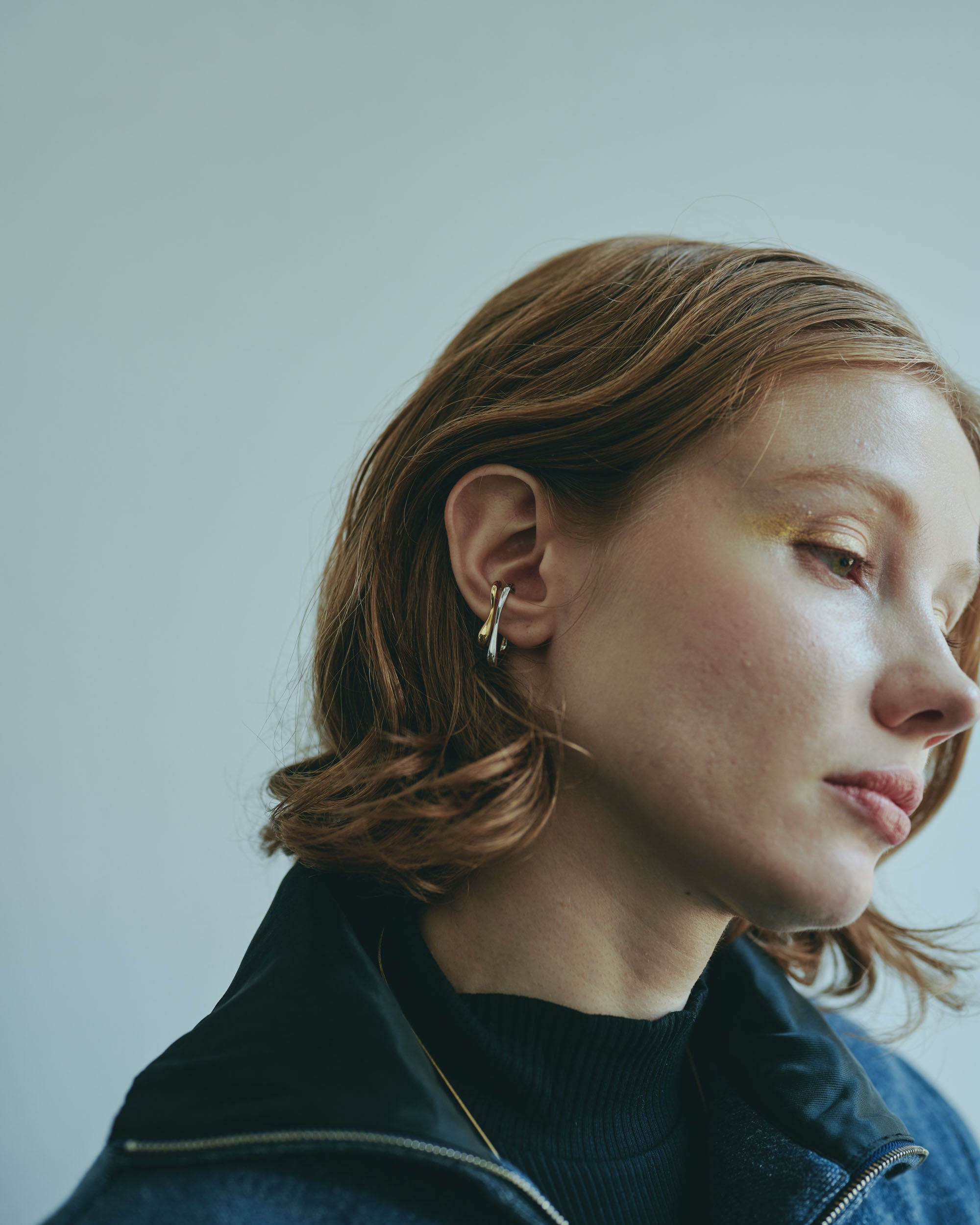 雫のように柔らかに連なるダブルラインのイヤーカフ。