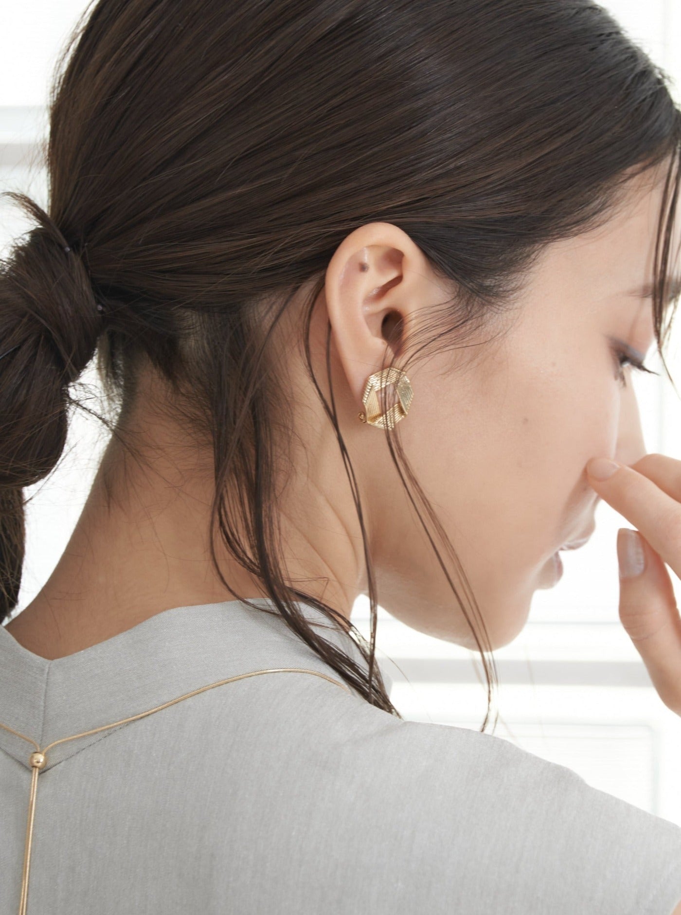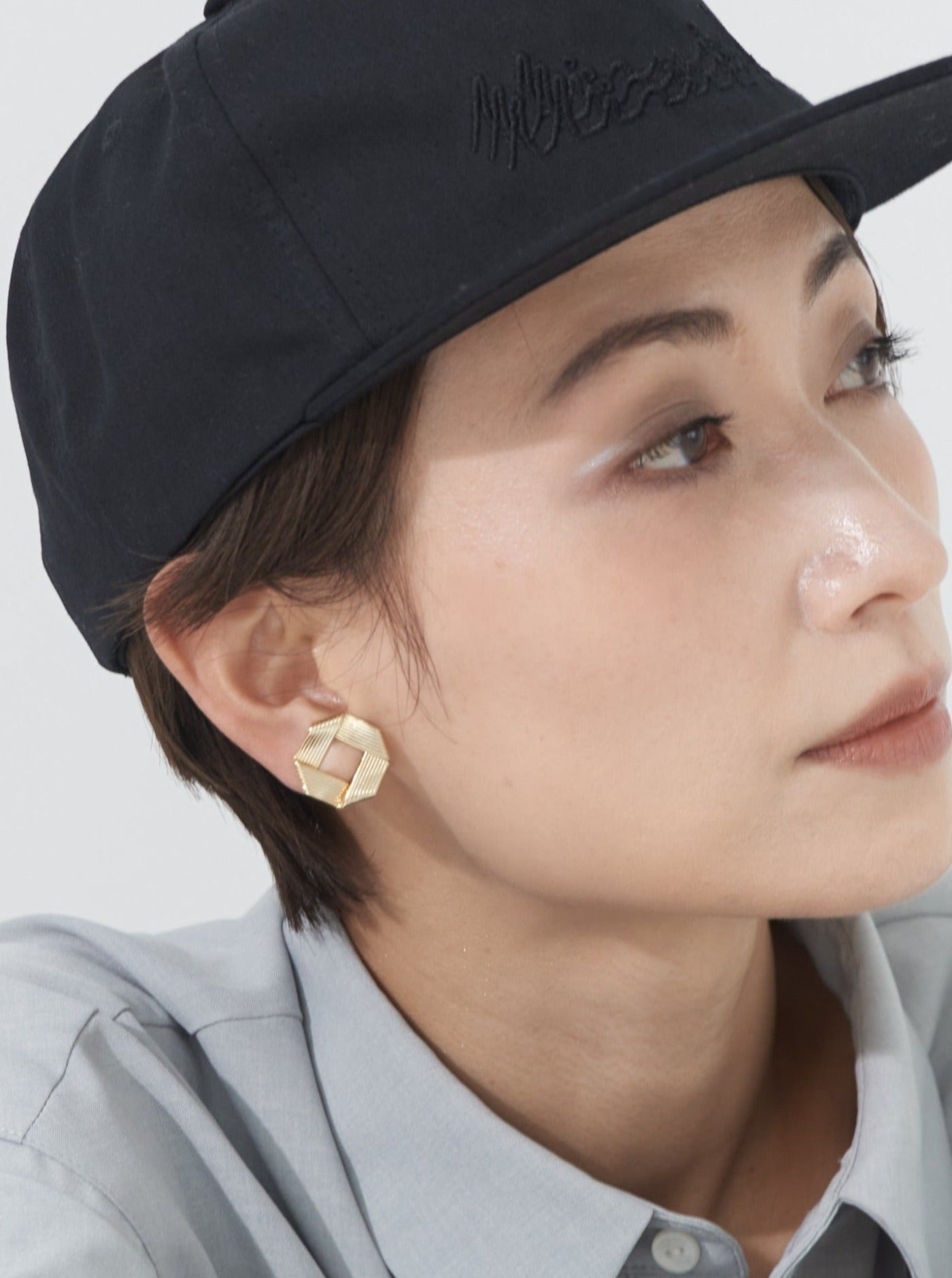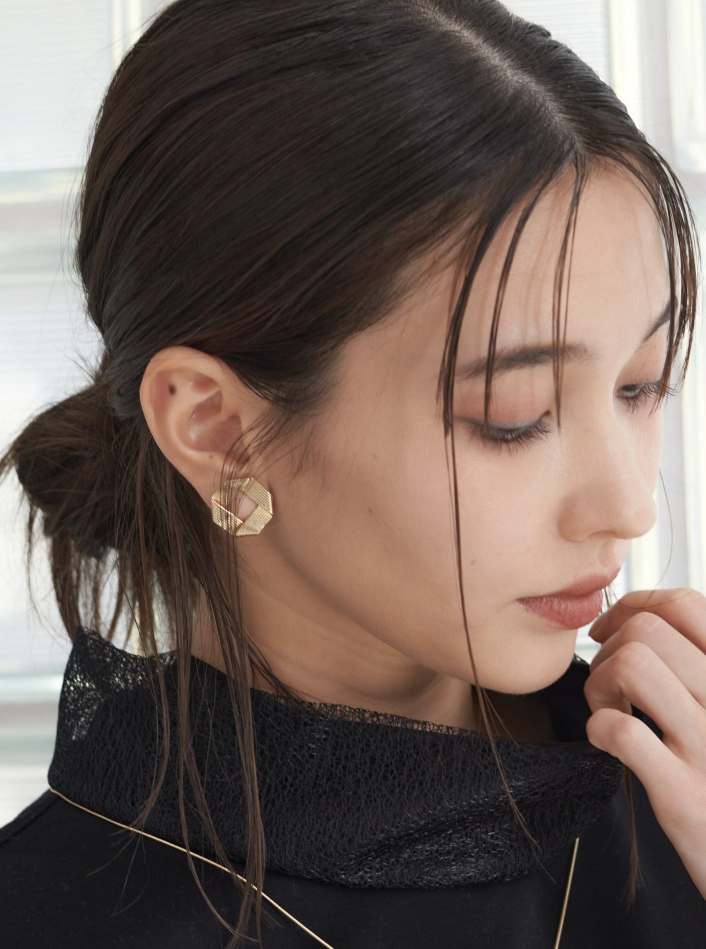 幾何学模様の立体的でシャープなデザインのイヤリング。
