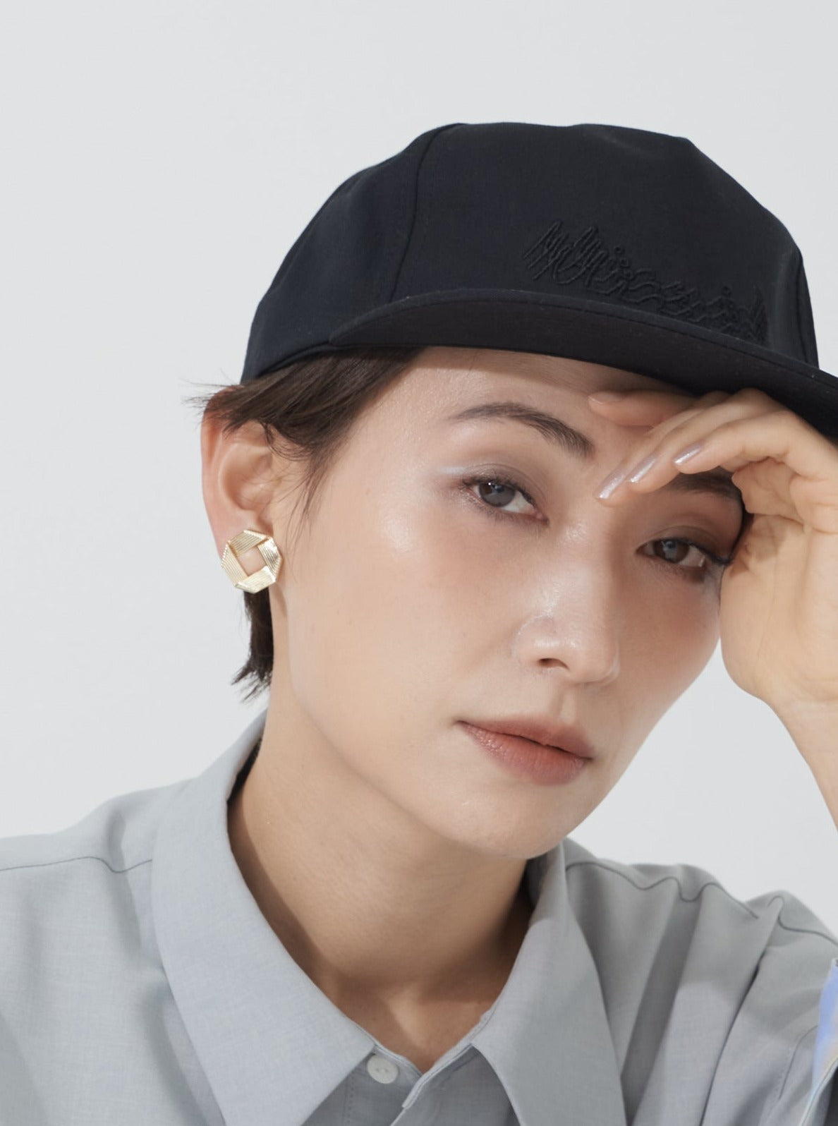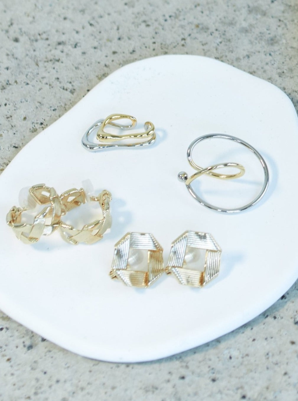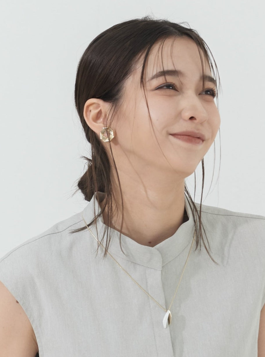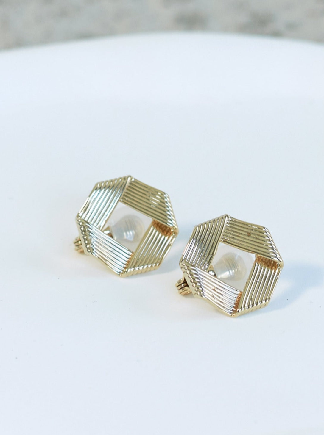 幾何学模様の立体的でシャープなデザインのイヤリング。