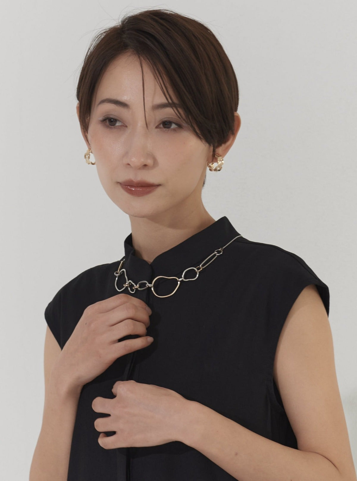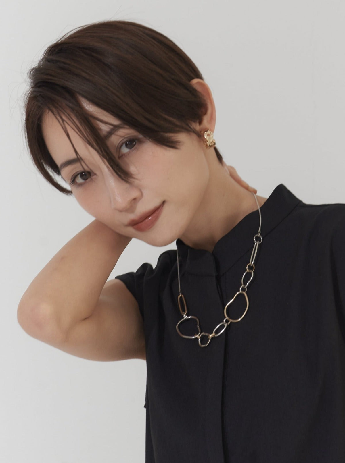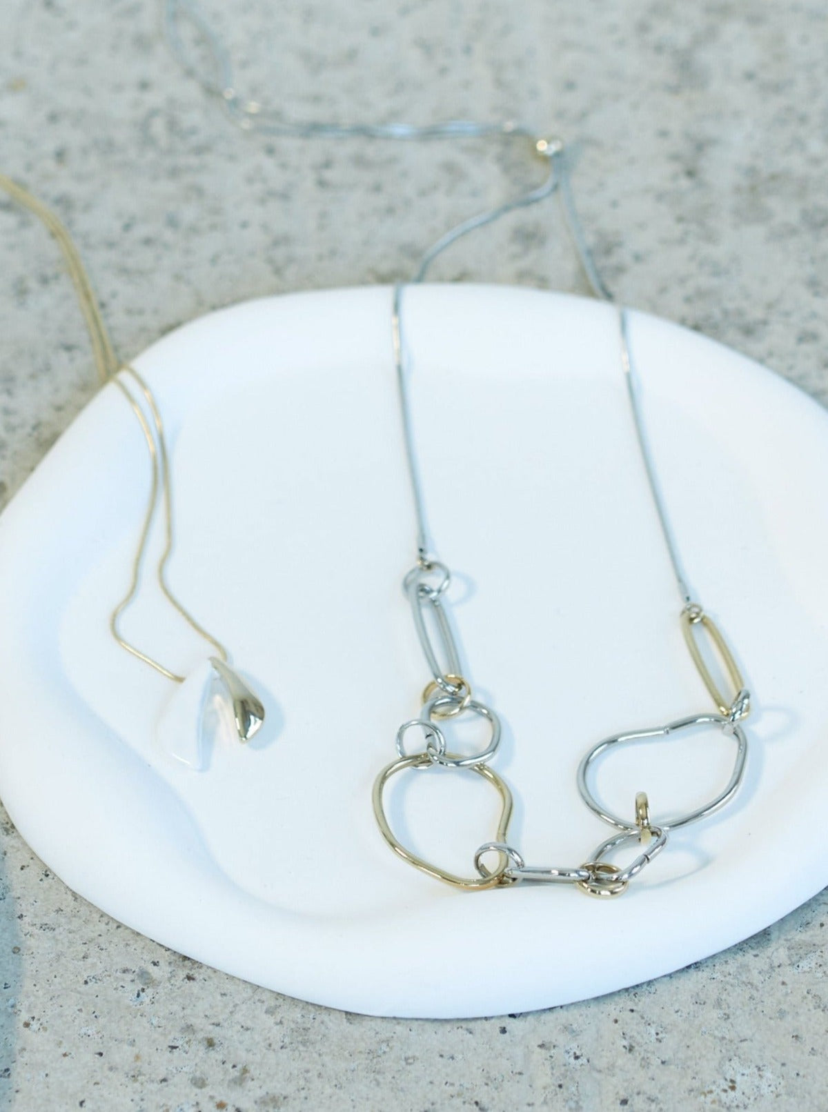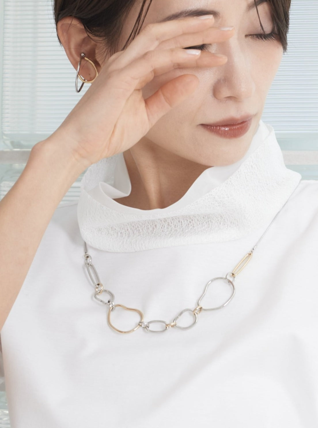 水面のような緩やかな曲線を描いたメタルパーツのネックレス。