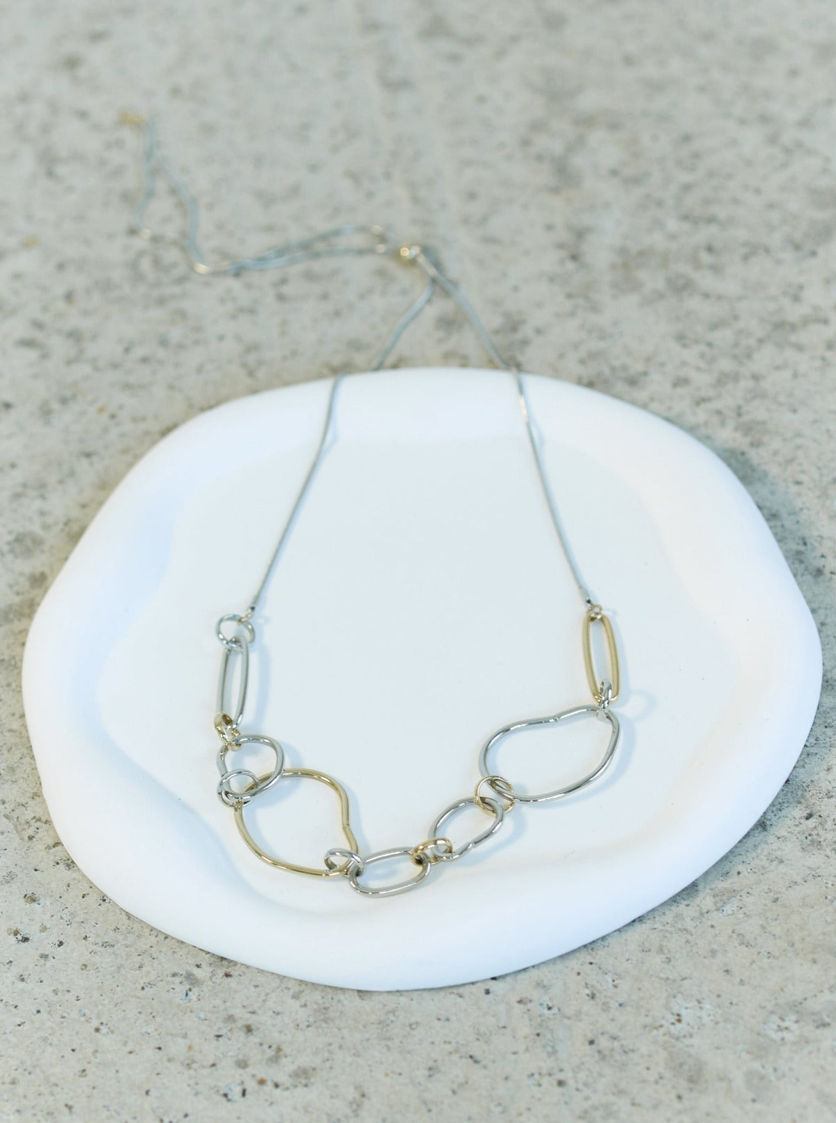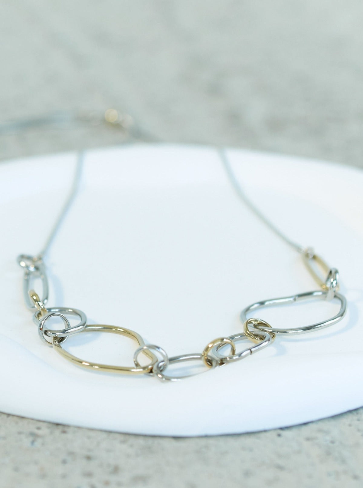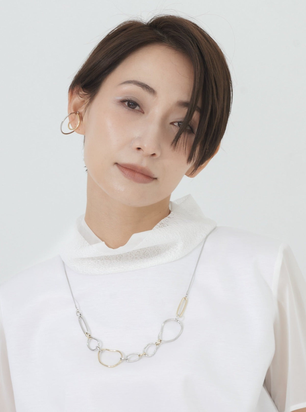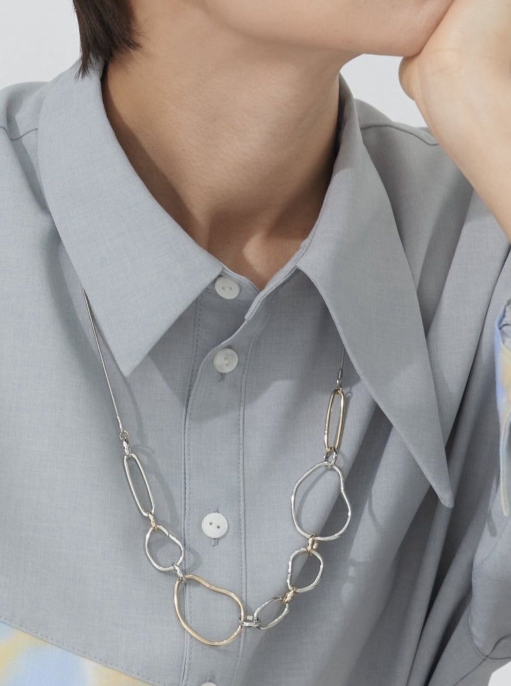 水面のような緩やかな曲線を描いたメタルパーツのネックレス。
